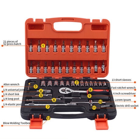Compact and Portable 46-Piece Socket Hand Tool Set with Plastic Case