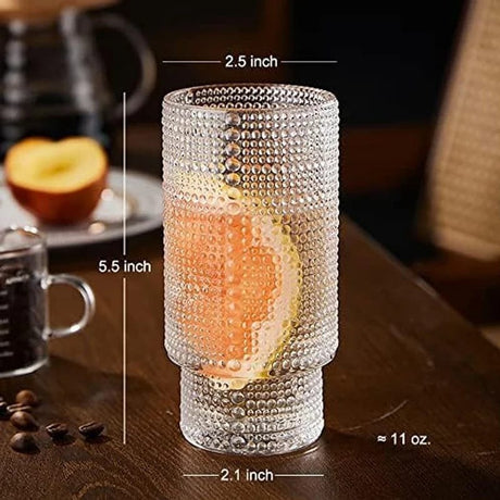 Embossed vintage Ribbed transparent Glass / iced coffe glass 6 pcs set