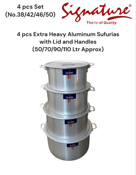 - SaleiDecorator Extra Heavy Aluminum Sufurias with Lid and Handles 4 pcs KSh65,000.00KSh70,000.00Unit price /Unavailable