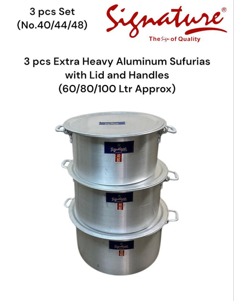 - SaleiDecorator Extra Heavy Aluminum Sufurias with Lid and Handles 3 pcs KSh43,000.00KSh45,000.00Unit price /Unavailable