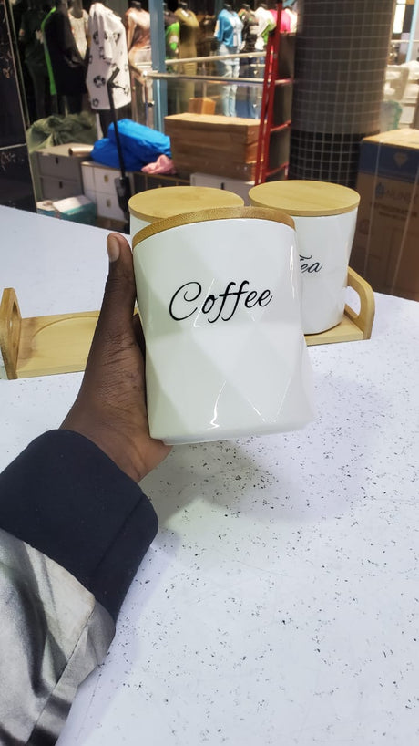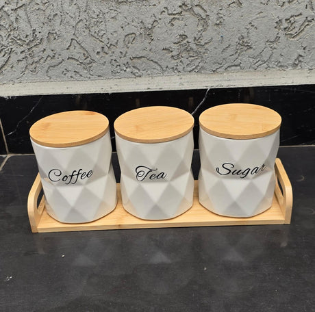 3pcs Ceramic Canisters Set with Bamboo Stand