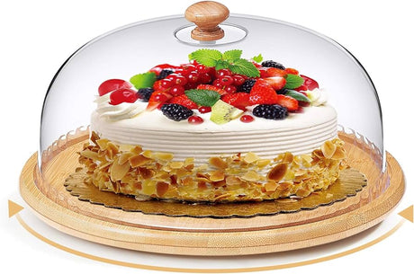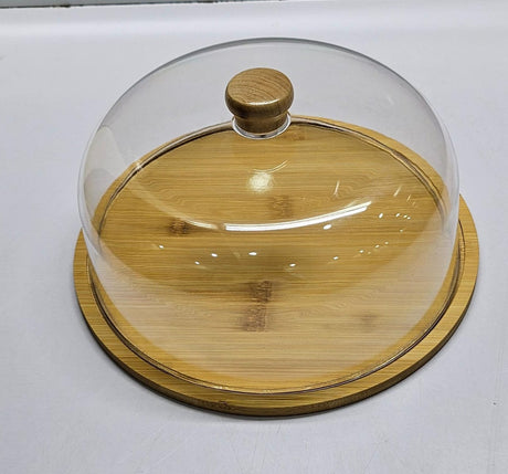 High quality bamboo base cake/fruit stand with high quality aclyric top dome cover