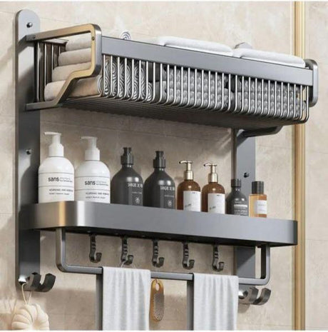 Bathroom wall mounted towel rack accessory with hooks 60cm