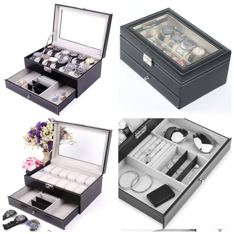 DOUBLE LAYER WATCH ORGANIZER/STORAGE BOX WITH LOWER COMPARTMENT