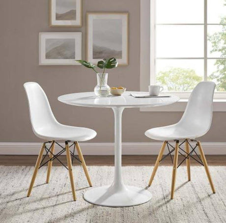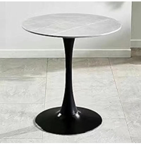 Round Dining Table with Faux Marble Top and Pedestal Base
