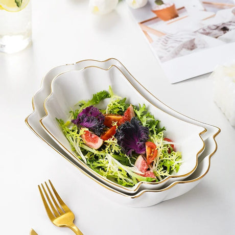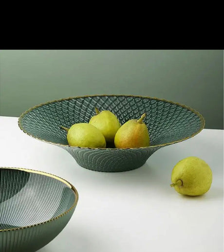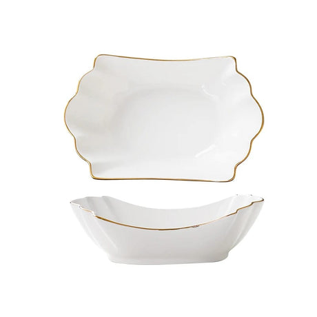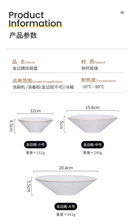 Transparent Glass Plate Golden Edge Fruit Salad Dessert Breakfast Dish Bowl Set Tablewear Dishes