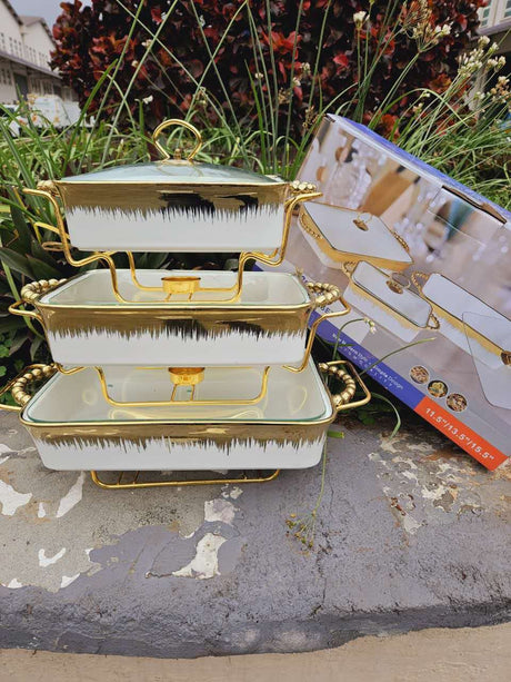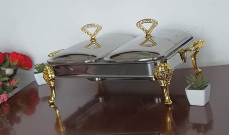 Oval Cheffing Dish with Gold Legs Double Compartment 9.0 Ltr