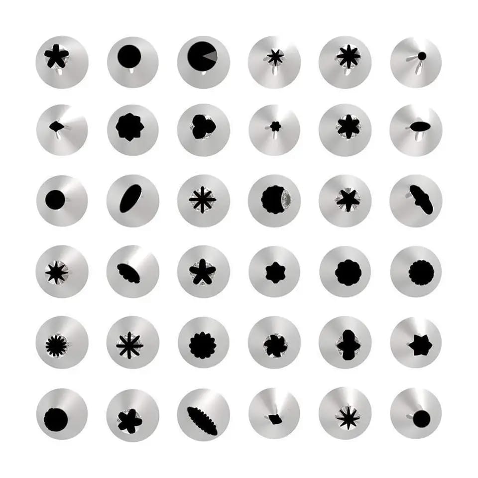 • Variety: Typically includes around 24-30 different piping tips for creating a range of designs such as stars, flowers, leaves, and more.