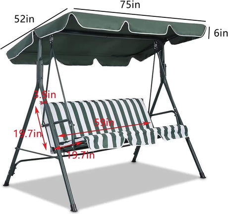 Patio Swing Canopy Cover Set – Waterproof Replacement (Green, 75x52x6 in)