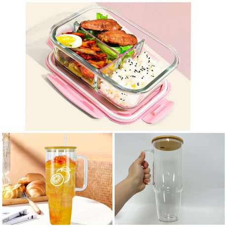Microwave Large Capacity 1400mls+ Borosilicate Glass mug with Bamboo lid
