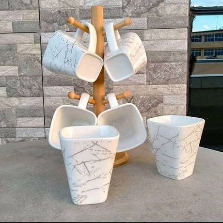 Marble coated 7pcs knife set come with box has a knife sharpening pot