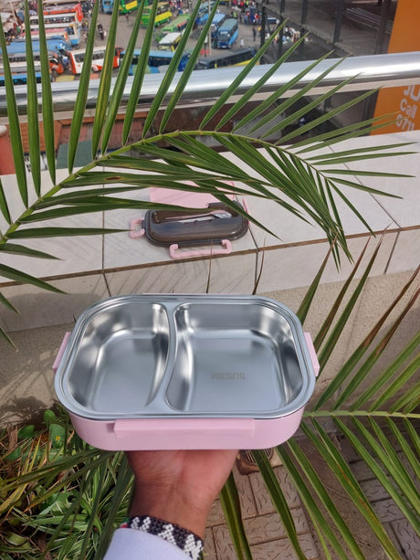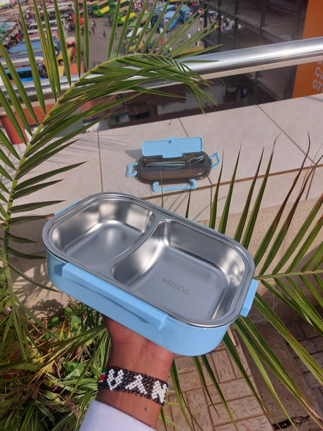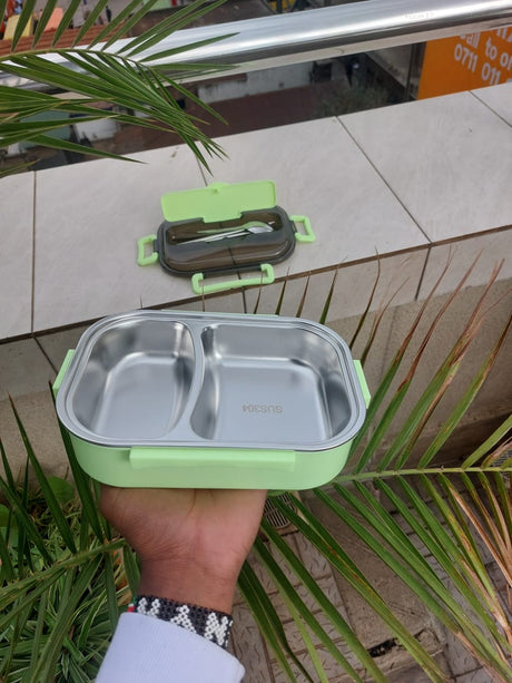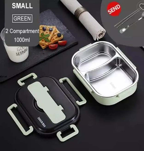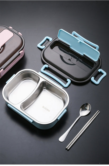Stainless Steel Lunch Box With Spoon and Chopsticks 2 Grid