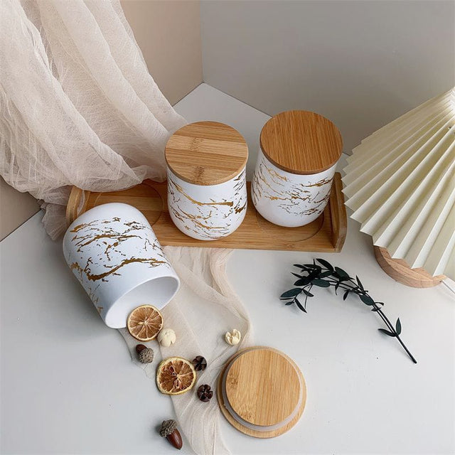 Canisters With A Bamboo Base Stand