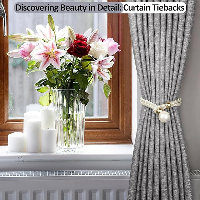 Curtain Tiebacks 2 Pcak with Adjuster, Curtain Tie Backs for Curtain Holders for Wall Curtain Holdbacks, Curtain Pull Backs, Curtain Tieback Hooks, Curtain Ties for Drapes