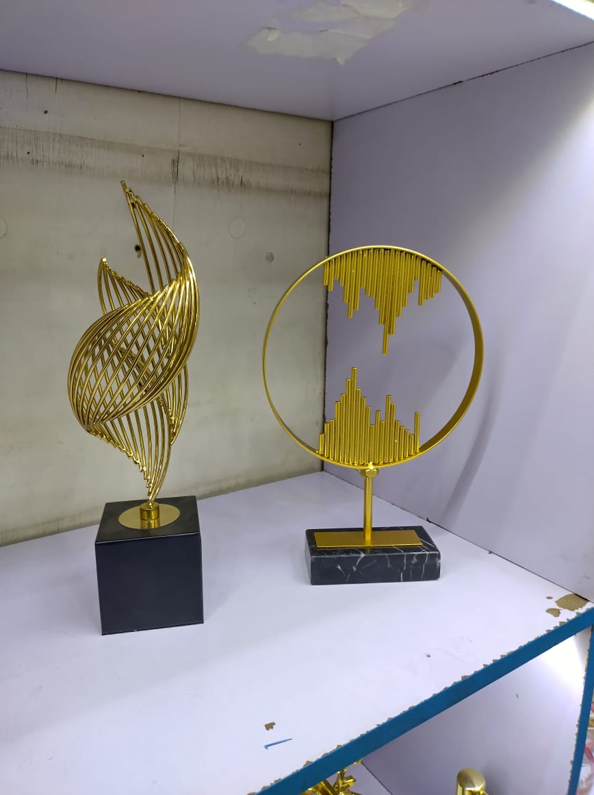 - Decorative Accent: The metallic decor serves primarily as a decorative accent in interior spaces, adding a touch of sophistication and modernity. Its sleek metal construction and compact size make it ideal for enhancing the visual appeal of living rooms, offices, or entryways.