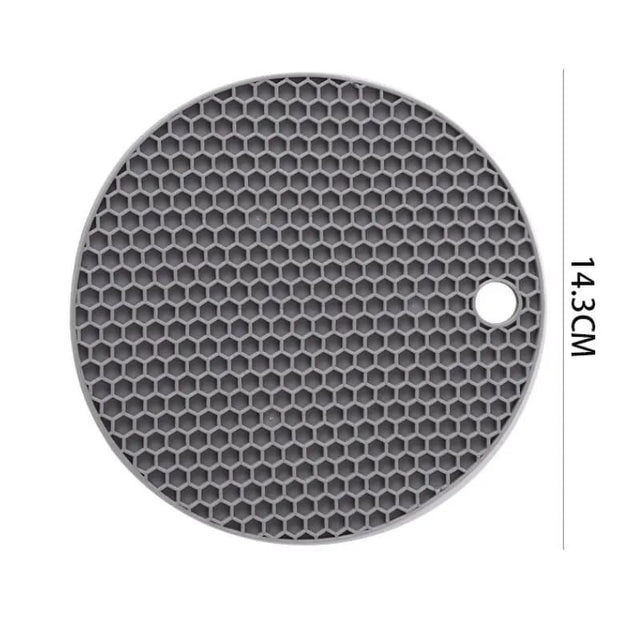 Round Shape: The mat typically features a round shape, providing a stable and spacious base for placing pots, pans, baking dishes, or hot serving bowls. The circular design allows for versatile placement on various surfaces.