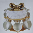 set of 6 ceramic marble-like soup bowls 1 soup touren on bamboo base + burner
